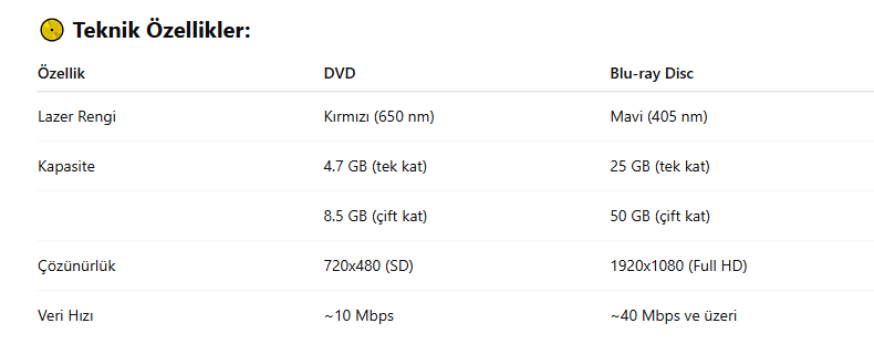 Blu-ray Disc (BD), yüksek çözünürlükte video ve yüksek kapasiteli veri saklama için geliştirilmiş optik disk formatıdır. Adını, verileri okumak için kullanılan mavi-lazer ışığından alır. Bu lazer, DVD’deki kırmızı lazerden daha kısa dalga boyuna (405 nm) sahiptir, bu da daha küçük veri noktalarını okumasını ve dolayısıyla daha fazla veriyi diske sığdırmasını sağlar.