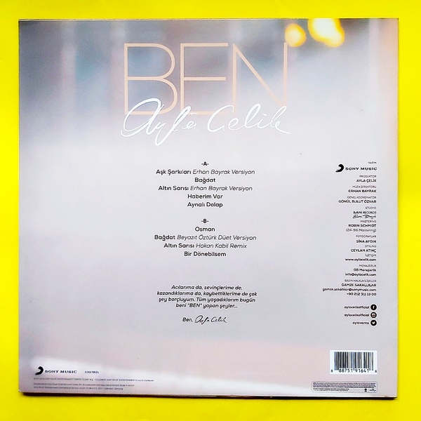 Ayla Çelik – Ben 2016 Baskısı Plak : 8,5 – EX Müzik türü : Pop