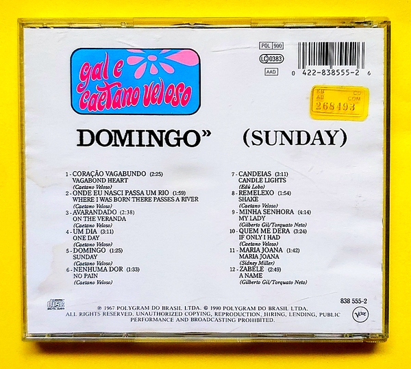 Domingo – Gal e Caetano Veloso 1990 Almanya Baskısı Müzik türü : Latin