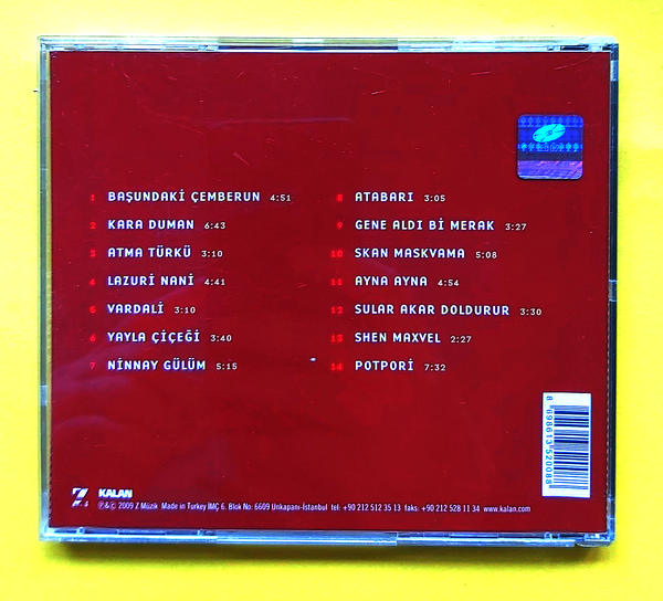 1 Başundaki Çemberun 2 Kara Duman 3 Atma Türkü 4 Lazuri Nani 5 Vardali 6 Yayla Çiçeği 7 Ninnay Gülüm 8 Atabarı 9 Gene Aldı Bi’ Merak 10 Skan Maskvama 11 Ayna Ayna 12 Sular Akar Doldurur 13 Shen Maxvel 14 Potpori