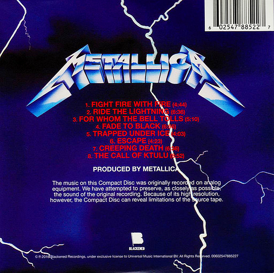 1 Fight Fire With Fire 2 Ride The Lightning 3 For Whom The Bell Tolls 4 Fade To Black 5 Trapped Under Ice 6 Escape 7 Creeping Death 8 The Call Of Ktulu