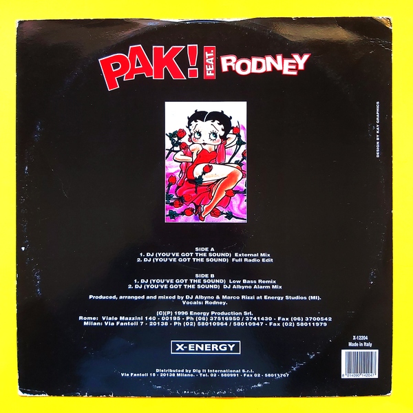 PAK! Feat. Rodney – DJ -You’ve Got The Sound – Maxi Plak 1996 İtalya Baskısı Orijnal Kapak Plak : 8,5 – EX Müzik türü : Electronic , Hiphop