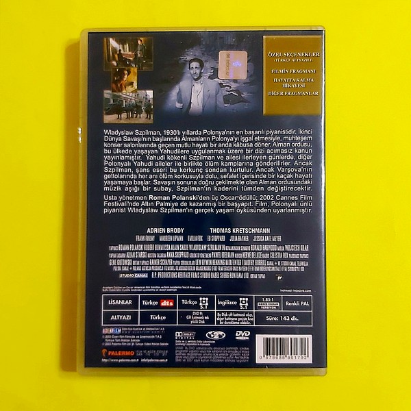 Piyanist – DVD Cannes Altın Palmiye 3 Oskar – 2 Bafta Ödülü sahibi film. 2003 Baskısı Türkçe Dublaj Özel seçenekler 143.Dakika