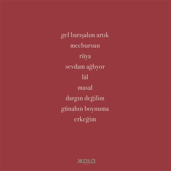 1. Gel Barışalım Artık 2. Mecbursun 3. Rüya 4. Sevdam Ağlıyor 5. La’l 6. Masal 7. Dargın Değilim 8. Günahın Boynuna 9. Erkeğim