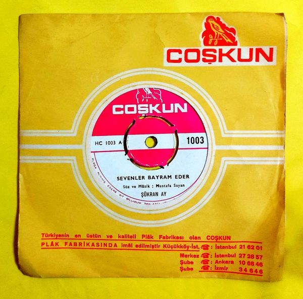 Şükran Ay – Sevenler bayram eder B Yüzü : Kaçak Aşk 1970 Baskısı Orijinal Firma Kapak Plak : 8,5 – EX Müzik türü : Türk Sanat Müziği