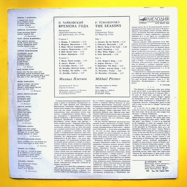 Çaykovski’nin “The Seasons” (Mevsimler) adlı piyano süitindeki eserleri içeren albümdür.