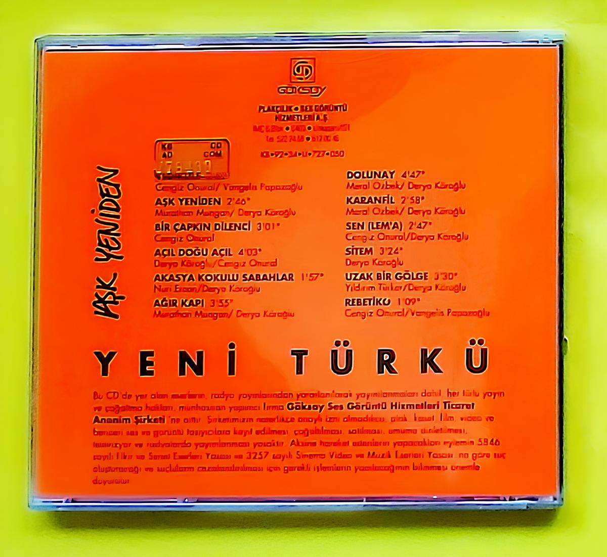 Yeni Türkü – Aşk Yeniden 1992 Baskısı Müzik türü : Pop